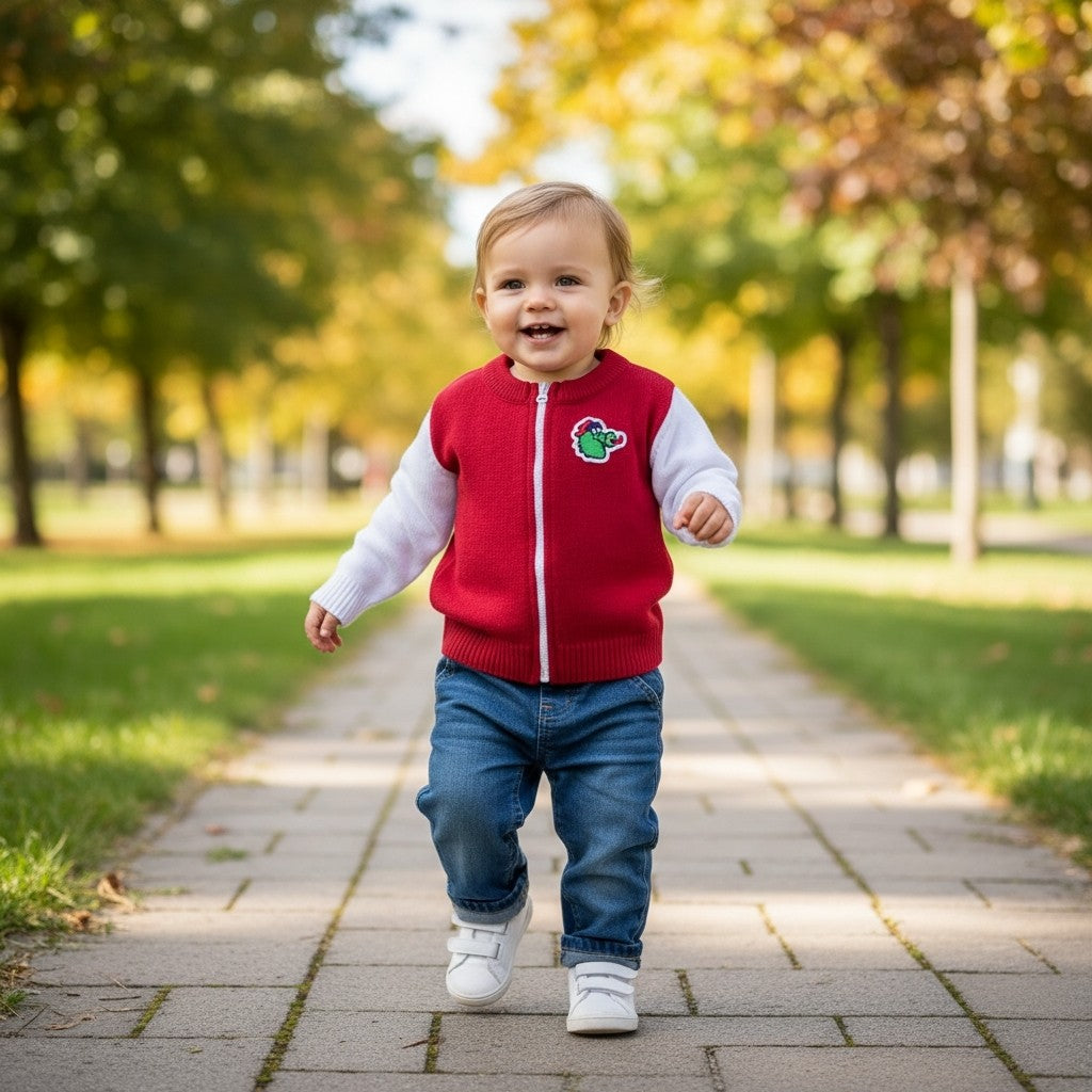 Child Full Zipper Embroidered Phanatic Patch Sweater
